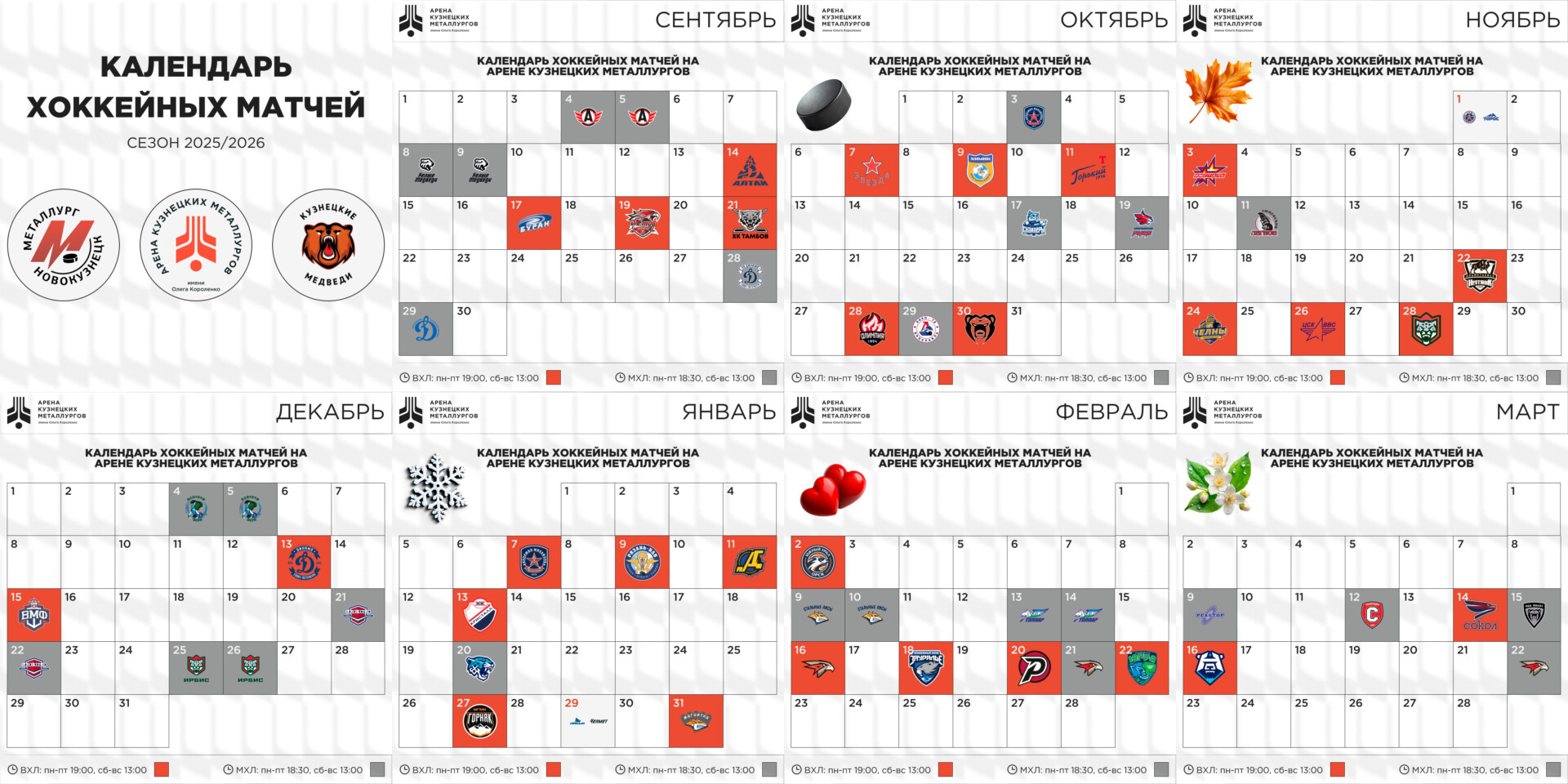 Календарь домашних игр ВХЛ команды Металлург-НК